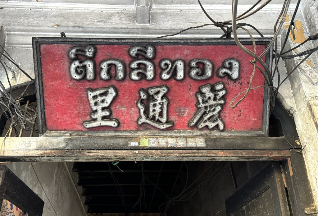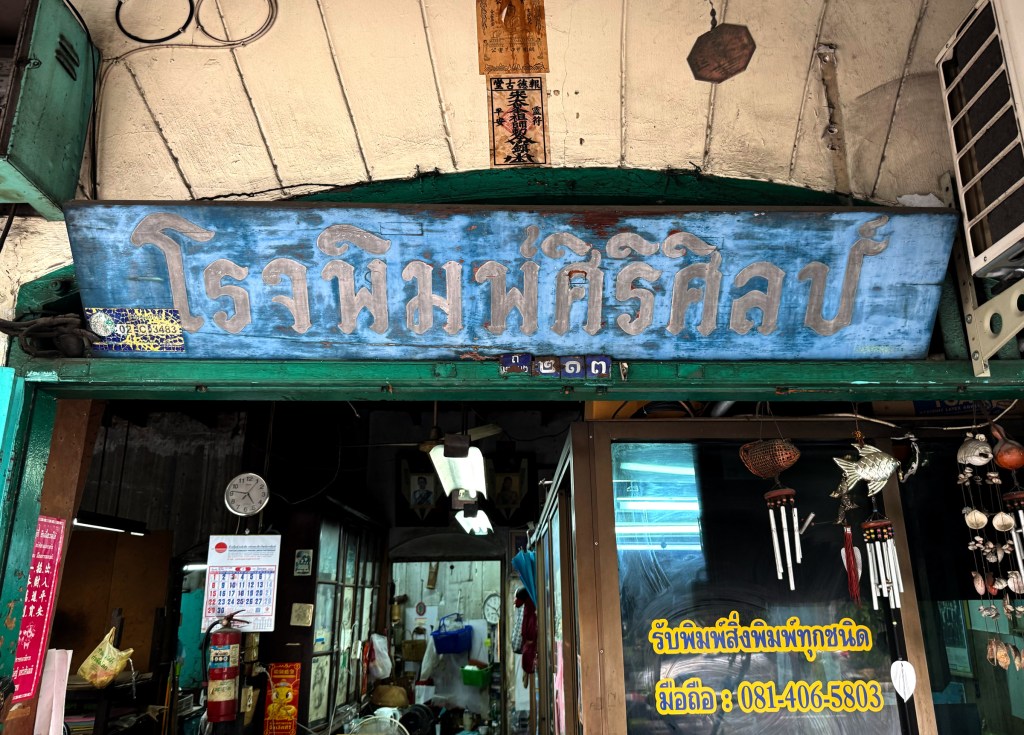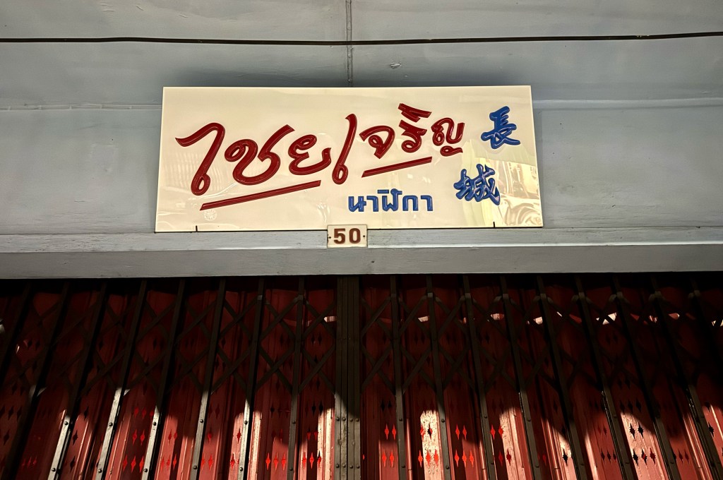You don’t often come across hand painted signboards these days, which makes this one feel like a rare gem. it has the charm of chalk on a blackboard minimal but quite special. Being a shop in Chinatown, the sign naturally blends both Thai and Chinese scripts, giving it an authentic touch. It’s likely been around for a few decades, carrying with it a quiet sense of history.