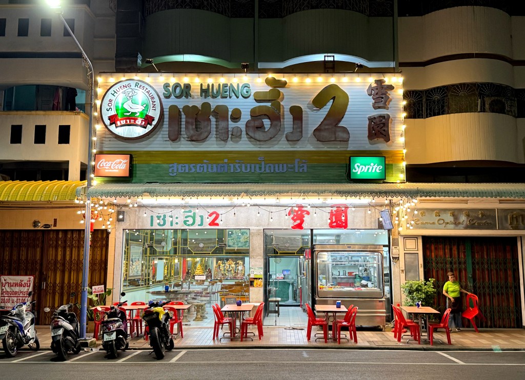 Also spotted in Hat Yai this restaurant has a massive, eye-catching sign that’s quite a visual experience. The layout is a bit busy, but that’s part of its charm. The Chinese name, “Snow Garden,” is written in a bold, old-school traditional font that adds to its nostalgic appeal.