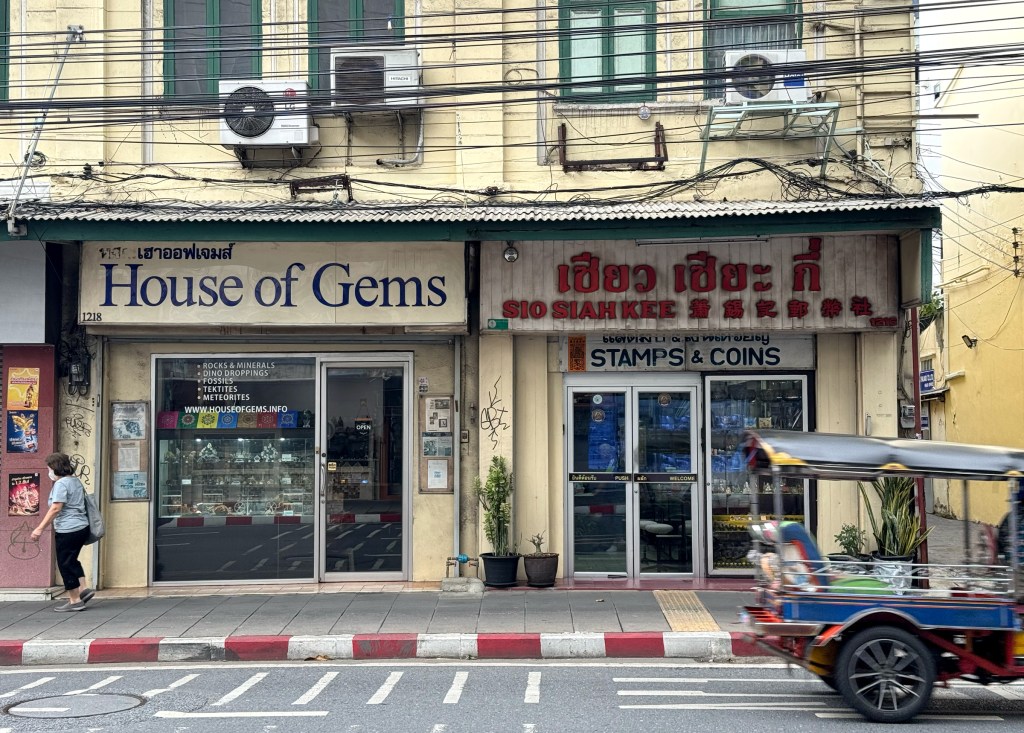 I’ll admit what caught my attention with this signage wasn’t the signboard itself. It’s actually a very typical style you’ll see across Bangkok: three languages, gold lettering on a black background classic Thai-Chinese business aesthetics. What really drew me in were all the different talismans surrounding it. Just look at them, each one with its own color, shape, and design. It’s such a fascinating, vibrant display. This shop feels truly blessed.