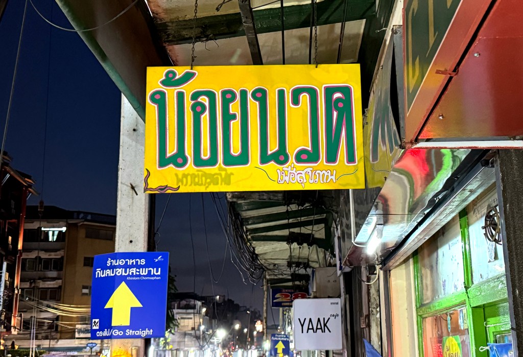 Which brings me to this beautiful sign I stumbled upon near Thewet Pier in the Old Town. (Yes, Thewet—“the wet,” not “the dry.” I swear, some place names in Bangkok are so much more exotic than where I come from. If you know, you know: People Road, People Square… People this, People that almost everywhere.)